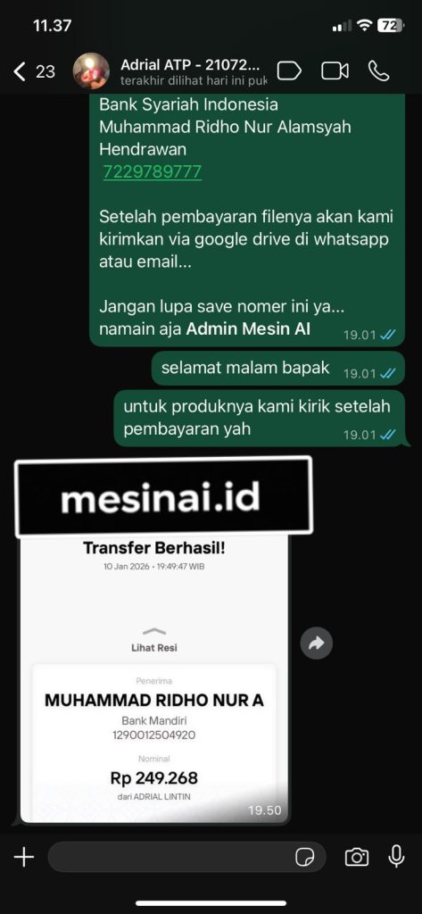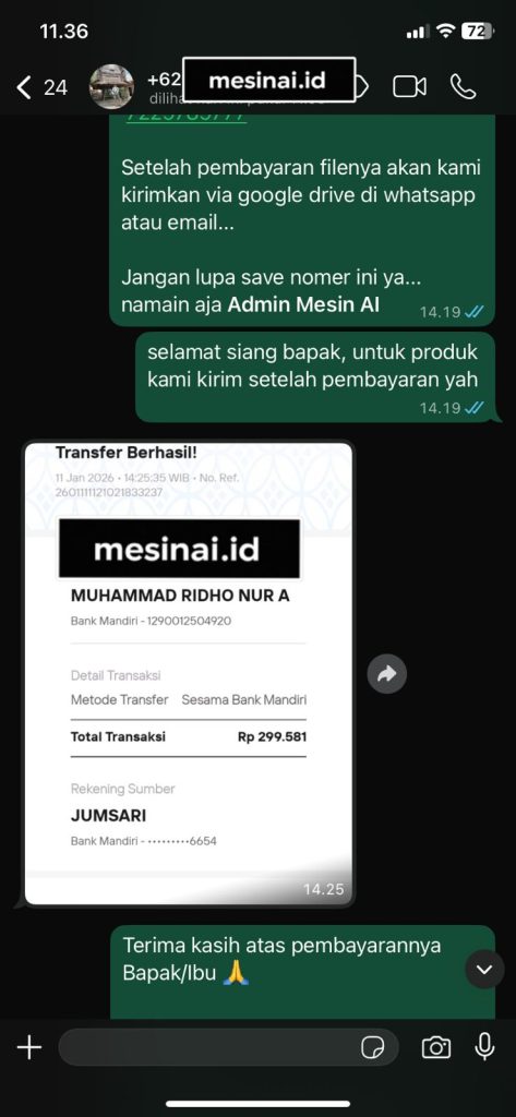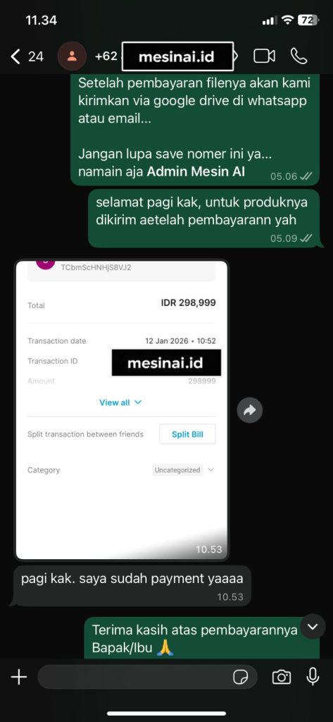 AI Psychology dikirimkan melalui WhatsApp dan email Anda segera setelah pembayaran dikonfirmasi. Anda akan mendapatkan akses ke platform AI dengan panduan penggunaan lengkap.
